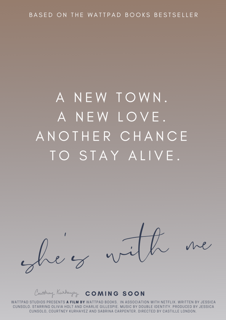 In the second episode, we learn that Arden never listens when Courtney talks about her favorite book characters, so she apparently learns of Courtney’s obsession with the Wattpad series “She’s With Me” for the first time. (Or at least, her feelings about the main lover interest, Aiden Parker.) The episode is accompanied by both teaser and theatrical posters for the first book in Jessica Cunsolo’s trilogy, which has already been optioned for TV by Sony!