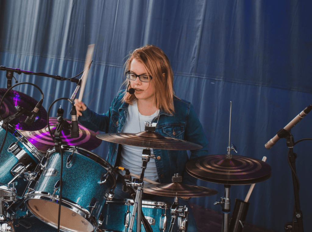 I started playing drums 15 years ago, when my neighbors gifted my twin sister and I with their old drum set as a present for our 5th birthday. Soon after, we began taking drum lessons, with my sister Arden switching to learn guitar a few years later.